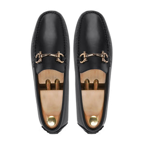 Black Leather Loafers for Men – Handmade Slip-On Dress Shoes with Metal Bit