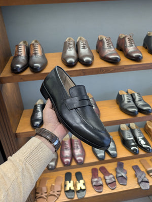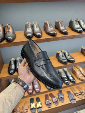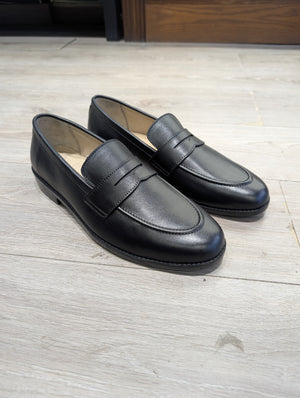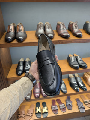 Upgrade your footwear collection with these elegant black leather penny loafers, designed for timeless style and all-day comfort. These classic loafers feature a sleek, polished finish and a durable leather sole.