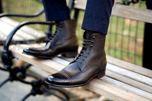 Cap-Toe Dress Boot | Chocolate Pebbled Leather