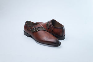 Handcrafted Men’s Double Monk Strap Leather Shoes – Antique Brown Patina | Old Money Style Dress Shoes