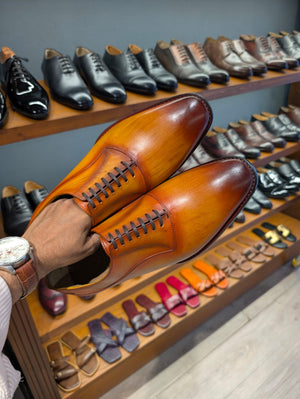Classic Oxford Silhouette: The sleek, closed-lacing system provides the ultimate formal profile for suits and tuxedos.