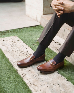 Werten Sie Ihre Garderobe mit diesen handgefertigten braunen Horsebit-Loafern aus Leder auf. Sie wurden für den modernen Gentleman entworfen, der Wert auf Stil, Komfort und hochwertige Verarbeitung legt. Mit ihrem glatten Obermaterial aus Leder, den eleganten goldfarbenen Horsebit-Details und der strapazierfähigen Ledersohle vereinen diese Loafer klassische Eleganz und Alltagstauglichkeit. Ob fürs Büro, eine Hochzeit oder einen legeren Anlass – diese Loafer setzen ein edles Statement.