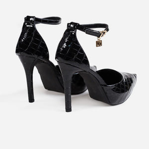Wir präsentieren unseren Hologlam Croc 4-Zoll-Stiletto-Pumps mit Plateau – eine faszinierende Mischung aus Stil, Raffinesse und modernem Charme. Das Obermaterial dieser Pumps ist aus synthetischem holografischem Lackmaterial in schicker Kroko-Textur gefertigt und bietet eine einzigartige und auffällige Ästhetik. Das holografische Finish verleiht einen Hauch von futuristischem Glamour, während die Kroko-Textur für ein luxuriöses und kantiges Gefühl sorgt. Der 4-Zoll-Stiletto-Absatz wurde sowohl für Eleganz als auch für Höhe entworfen und wird durch ein Plateau ergänzt, wodurch eine perfekte Balance entsteht, die Stabilität gewährleistet, ohne Kompromisse beim Stil einzugehen. Die spitze Zehenform verleiht einen Hauch von Raffinesse und verleiht Ihrem Ensemble ein elegantes und elegantes Finish. Egal, ob Sie die Tanzfläche erobern oder bei einem besonderen Event einen großen Auftritt hinlegen, der Hologlam Croc Stiletto-Pumps mit Plateau ist Ihre erste Wahl, um ein mutiges und unvergessliches Statement abzugeben. mit Plateau ist Ihre erste Wahl, um ein mutiges und unvergessliches Statement abzugeben.