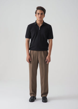 Elevate your casual wardrobe with our Black Ribbed Knit Zip Polo – a contemporary take on a timeless classic. Crafted from a premium, breathable knit, this polo features a distinctive vertical rib texture and a sleek half-zip placket, offering both comfort and cutting-edge style.