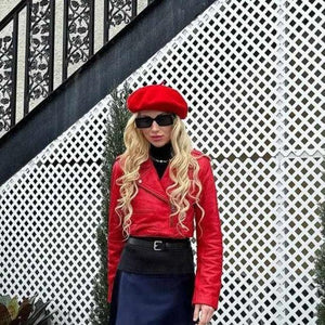 Rote Leder-Bikerjacke für Damen | Stylish & Trendy UK