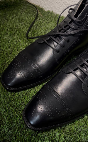 Introducing the 'London' Brogue Boot from Harmain Leathers – a fusion of timeless British design and bespoke craftsmanship. Each pair is a unique expression of style, meticulously handcrafted to bring you an unrivalled blend of elegance and durability