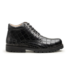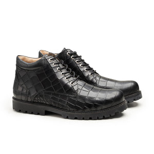 Make a bold statement with our exquisite men's black crocodile effect boots, designed for the modern gentleman who appreciates both luxury and rugged style. Perfect for navigating the bustling streets of London or making an impression at any event, these boots blend sophistication with enduring comfort.