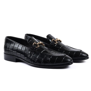 Upgrade your footwear collection with these premium men's black crocodile-embossed leather loafers. Designed for sophistication and style, these slip-on shoes feature a sleek crocodile texture and elegant gold-tone metal detailing, perfect for formal events, office wear, or special occasions.