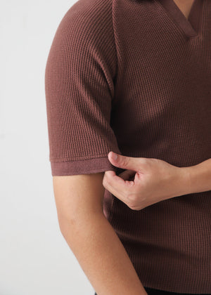 Men's Brown Ribbed Knit Polo Shirt | Terracotta Slim Fit Polo Top