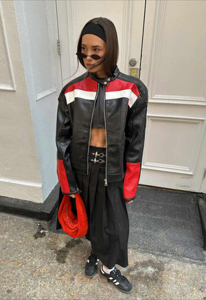 Crafted from our signature soft leather. With metal hardware; zip pockets and a classic waist belt. It's got attitude - just the right amount.