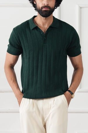 Home The Ribbed Knit Polo | Forest Green | Short Sleeve Tailored Knit Shirt